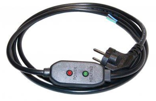 При подключении к источнику питания загорается красная лампочка POWER, которая горит постоянно. Когда температура окружающей среды становится менее +5℃, срабатывает сенсор, к саморегулирующемуся нагревательному кабелю подается напряжение и кабель начинает нагреваться. В это время загорается зеленая лампочка HEATING, которая оповещает о переходе системы в рабочее состояние (нагрев). При достижении температуры +15℃, термостат переходит в режим ожидания, зеленая лампочка гаснет.