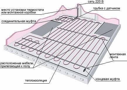При выборе греющего кабеля или мата ориентируйтесь не на общую площадь помещения, а на чистую площадь, не занимаемую мебелью.