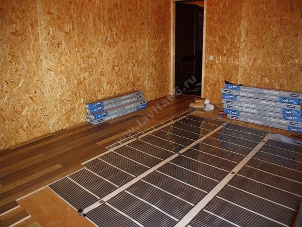 Подаем напряжение на контроллер и включаем его – если теплый пол работает, значит выключаем его и настилаем декоративное напольное покрытие. Как и говорилось выше, если вы укладываете инфракрасный теплый пол под линолеум или ковролин, то дополнительно его лучше накрыть ДВП.