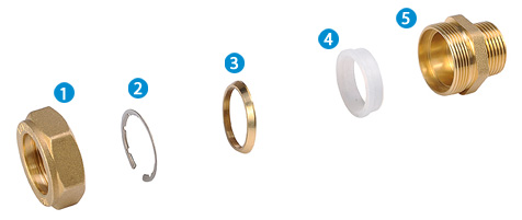 Составляющая фитинга очень проста, монтаж осуществляется двумя ключами что не требует привлечения специалиста и специального инструмента. Фитинг не требует обслуживания.